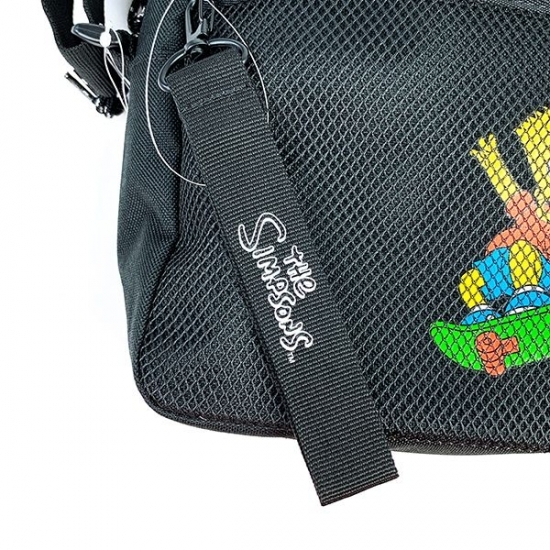 ブラックカラーのリュックは、ひと目でクールな印象♪中央には、スケボーを楽しむバートのデザインが描かれています。カラフルなバートガアクセントになってますね♪