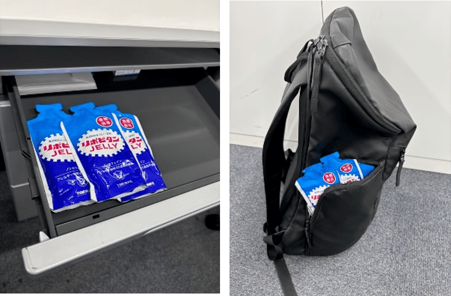 大正製薬では災害時に、水・食料などの支援を行ってきましたが、災害後だけではなく、予め備蓄しておける“リポビタン”を開発したいと思い、長期保存食の開発に着手しました。一般的な長期保存食は、乾燥しているもの(乾パンなど)や調理に水が必要なもの(水で戻すご飯)などが主流でしたが、より災害時の環境を考え「前向きになる気持ちを後押しする風味」をコンセプトに「ライフラインが止まっても食べられるもの」かつ「容器が処分しやすいもの」を考えていきました。商品開発に伴い、東日本大震災の際に被災した経験から、備蓄用ゼリーを開発した株式会社ワンテーブル様と協働して、災害時に求められるものを作りました。