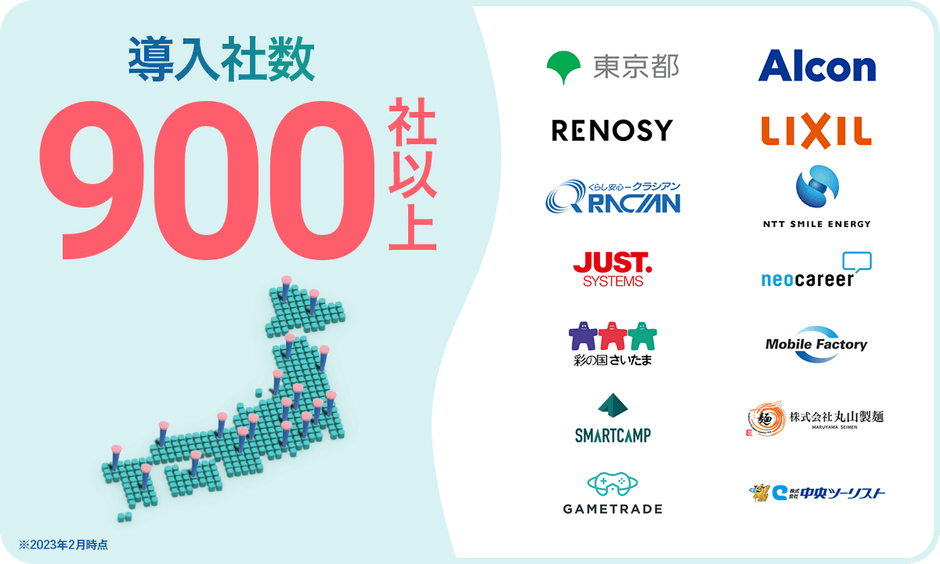 「デジコ」は、2023年2月時点で導入社数900社を突破しました。約3年間でさまざまな業種・業態への導入実績を有しており、多種多様な用途でご利用いただいております。