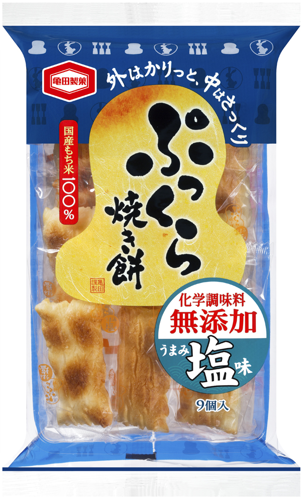 9個 ぷっくら焼き餅 うまみ塩味「ぷっくら焼き餅」シリーズは2014年5月より発売を開始しております。化学調味料無添加で、国産もち米を100%使用したこだわりの商品で、幅広い層のお客様にご愛顧いただいております。