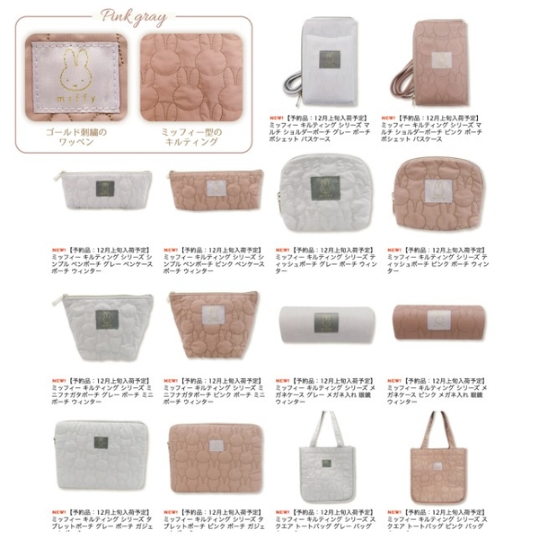 ミッフィー型のキルティング生地が大人カワイイ、ポーチやバッグなどをご覧いただきました。
