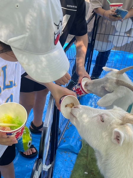 - 多様な動物との触れ合い体験:ヤギやカメといった身近な動物から、ヘビやトカゲなどの爬虫類まで、様々な動物とのふれあいを提供。各動物の特性や生態について担当者がふれあいを行いながら口頭で解説やPOP解説も行い、スタッフの説明付きでより動物を身近に・詳しく説明させていただいております。