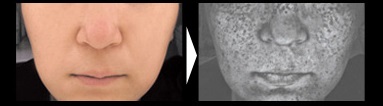 秋に女性の肌を専門の機械で見ると、夏に浴びた紫外線によって作り続けられ、蓄積したメラニンにより、シミやシワなどの予備軍である「潜在ジミ」が発生し、無数に点在しているのがわかります。この「潜在ジミ」の原因であるメラニンを排出するには、肌の水分量とターンオーバー ※2 が関係しますが、残念ながら秋口の肌は紫外線や空調などのダメージによりターンオーバーが乱れ、乾燥しています。