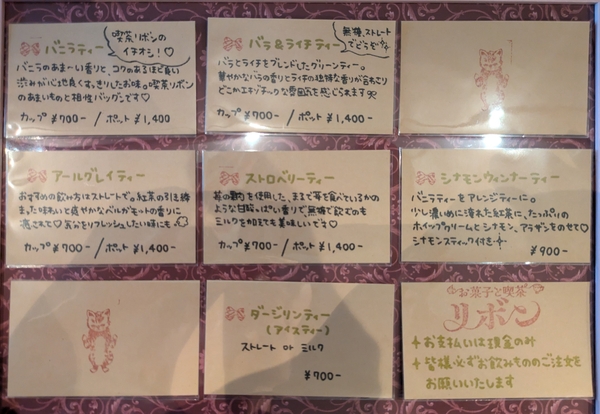バニラのあま~い香りと、コクのあるほど良い 渋みが心地良くすっきりしたお味。喫茶リボン のあまいものと相性バッグンです♡