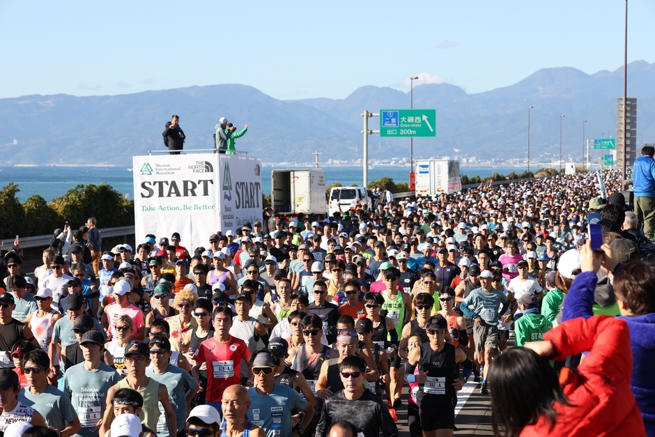 スターターを務めた瀧川一輝実行委員長は「今日はランニング日和。良い天気に恵まれました。完走を目指していただきたいですが、気温が高くなると思いますので早め早めに給水を。がんばってください」と激励。号砲と共に、約2万人のランナーがゴールを目指してスタートしました。