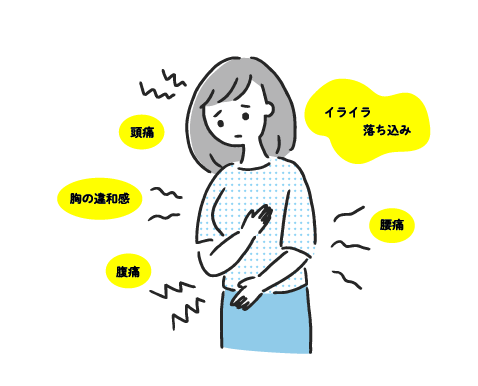 腹部緊満感・肩こり・頭痛・むくみ・体重増加・便秘・乳房緊満感
