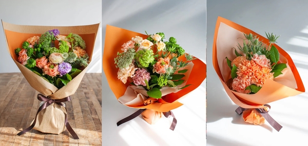 そこで当社は、豊富な国産花材を厳選し“ライトオレンジ×ピンク”のグラデーションで仕上げた「Gentle Glow」を開発。贈ったら褒められる花束として、・ボックスを開けるだけで思わず笑顔になるクオリティ