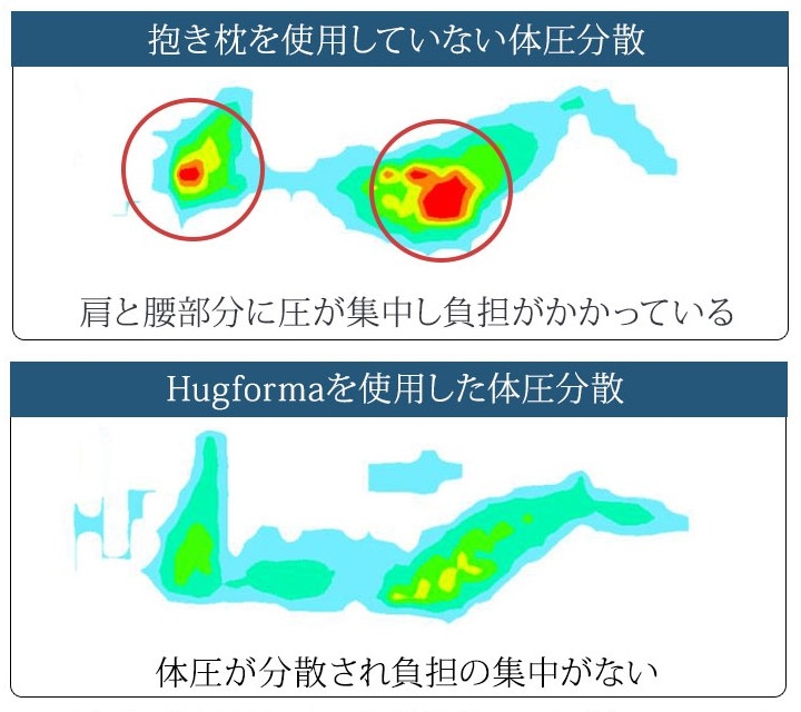 ベッドは下から支える。この抱き枕は全方向から支える「床面+抱き枕」。