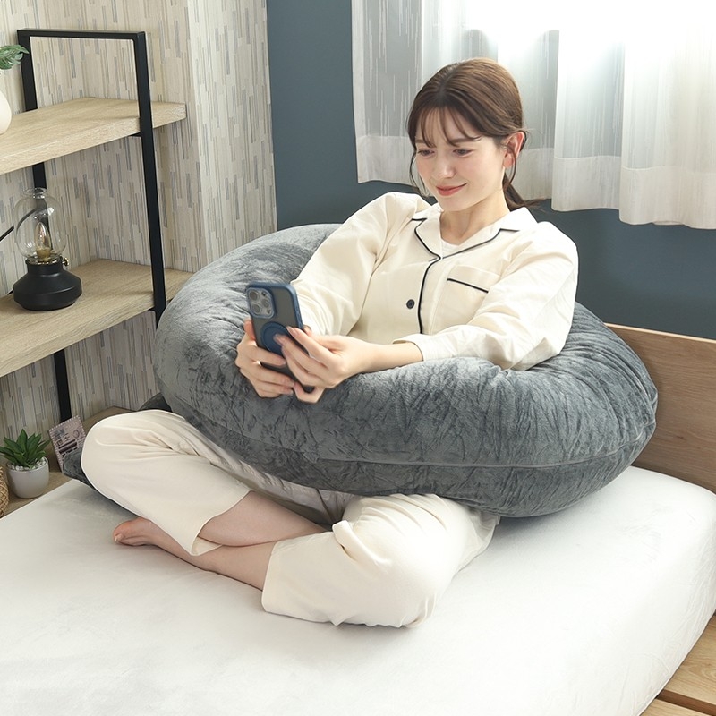 150cmの大型設計により、横向き寝時に頭部から足先まで身体全体を優しく包み込みます。肩・腰への圧迫を軽減し、横向き寝による身体の負荷を効率的に分散させることで、質の高い睡眠をサポートします。