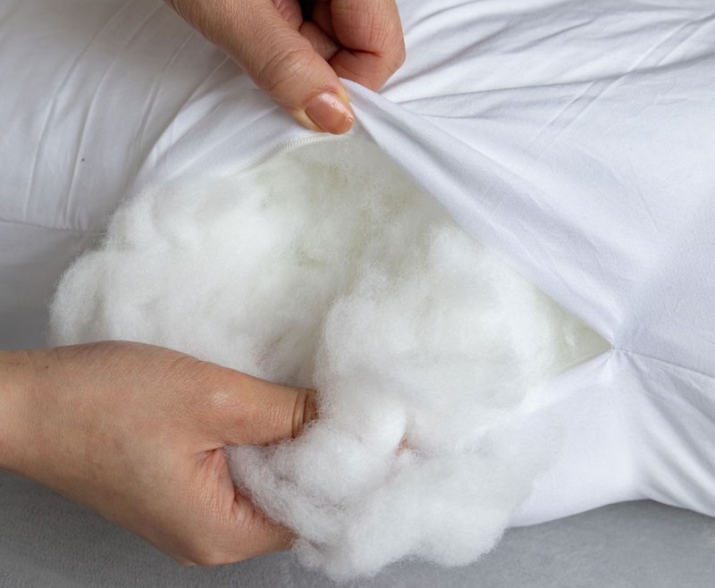 中綿を出し入れすることにより個々の体型に最適なフィット感を実現。枕の寝心地を左右する高さもお好みに合わせて調整が可能です。