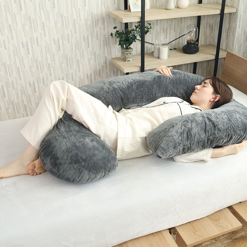 抱き枕は、横向き寝の姿勢をサポートするだけでなく、抱きつく安心感によりスムーズな睡眠導入や、質の良い睡眠をサポートしてくれる寝具です。HugFormaは抱き枕に「抱きつく」と同時に、「包まれる」をプラスして睡眠中の安心感をよりアップさせました。さらに睡眠中の身体全体の負荷分散と疲労回復の促進を実現する、横向き寝に特化した大型抱き枕です。