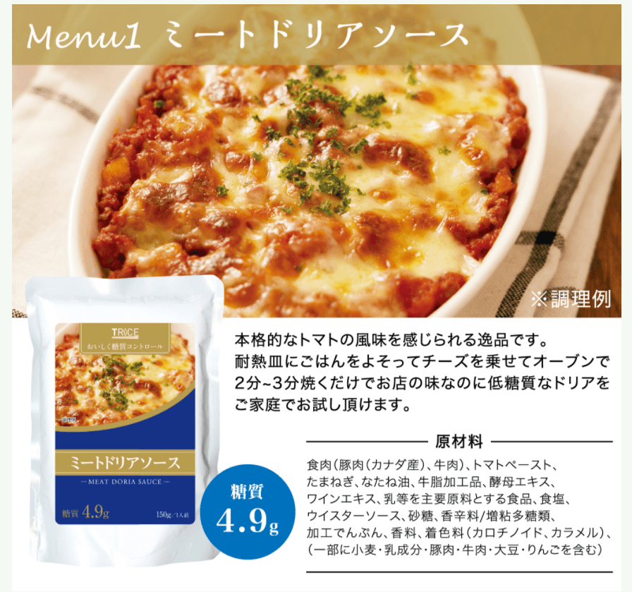 「TRICE専用レトルト」は「もっと気軽にTRICEを楽しみたい!」というみなさまからの熱い要望を受け、1年以上前から開発に着手。糖質制限ではタブーとされる「カレーライス」や「ドリア」といった“みんな大好き!でも糖質多めな料理“に着目。第一弾として「グリーンカレー」「ミートドリアソース」「ユッケジャンクッパ」の3種類のレトルトが完成しました。