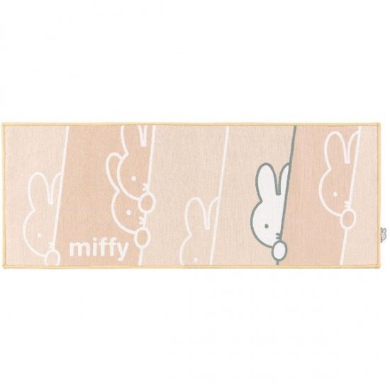 覗いているミッフィーがキュートな、シンプルデザインのマットです。ベージュとグレーの2色展開で、サイズも2種類。