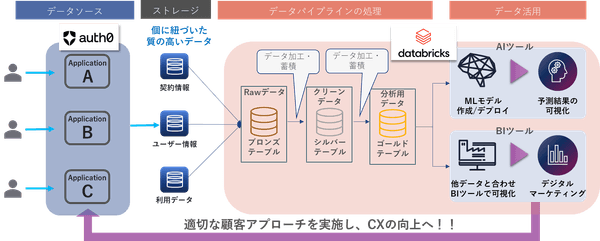 フレクトがマクニカと共に、周辺システムの連携含め、Auth0及びDatabricksの製品を組み込んだ顧客データ基盤を実装します。