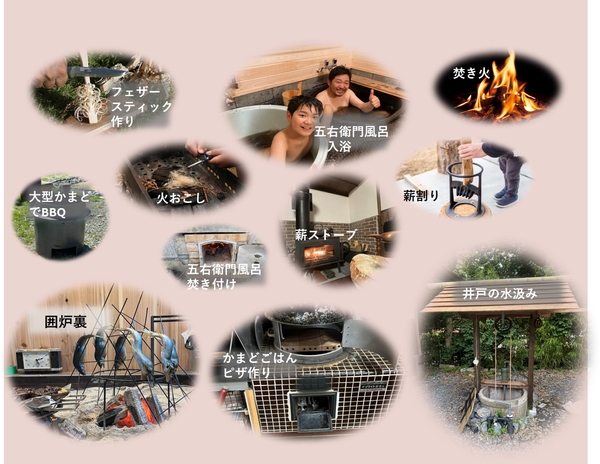 囲炉裏・かまど・五右衛門風呂などの火のお世話、かまど飯付き