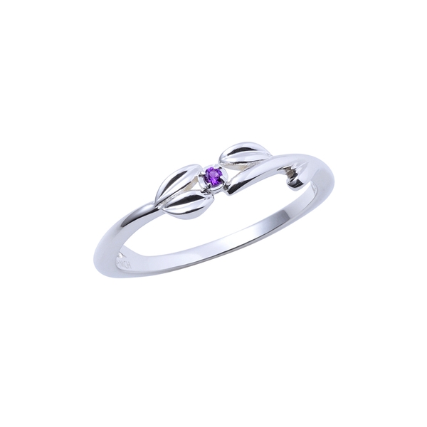 植物を操る妖精からイメージしたリーフモチーフに、キャラクターカラーストーンをセット。内側に名前を刻印しました。
