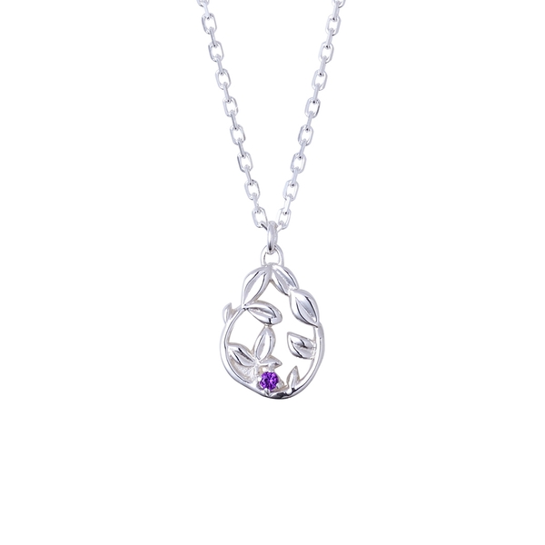 植物を操る妖精からイメージしたリーフモチーフに、キャラクターカラーストーンをセットした透かし柄のネックレス。