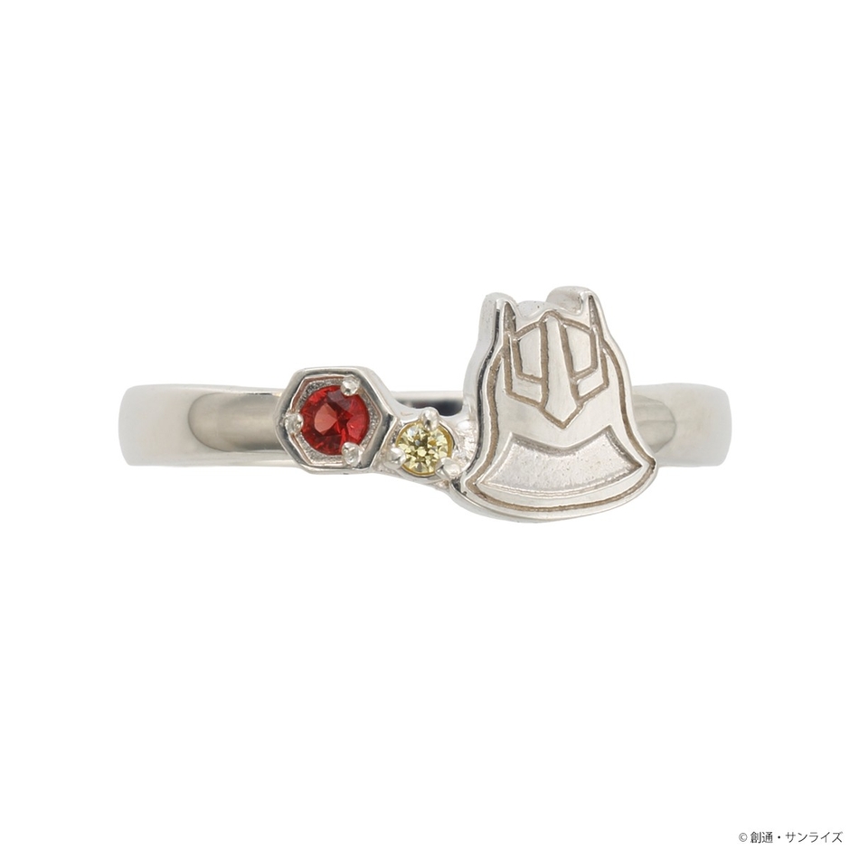『機動戦士Gundam GQuuuuuuX』のシャア・アズナブルをイメージしたシルバーリングです。ヘルメットをモチーフに取り込んだゆるやかなV字ラインのデザインにイメージカラーストーンを2石セットしました。
