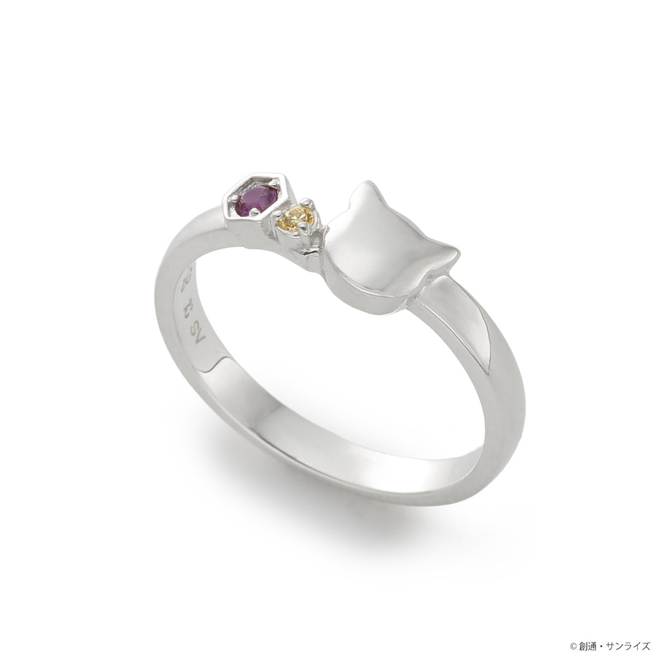 『機動戦士Gundam GQuuuuuuX』のニャアンをイメージしたシルバーリングです。ネコをモチーフに取り込んだゆるやかなV字ラインのデザインにイメージカラーストーンを2石セットしました。
