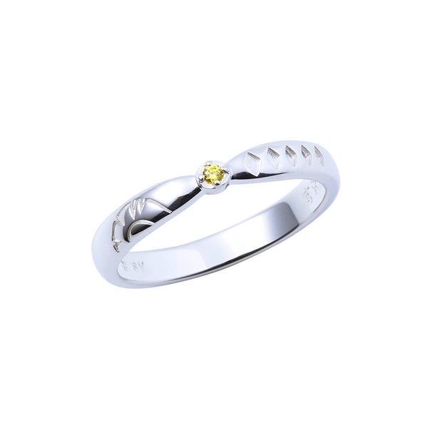 甲丸のストレートタイプのリングに麦わら帽子をモチーフとして取り込み、イメージカラーストーンをセット。内側には名前を刻印しました。