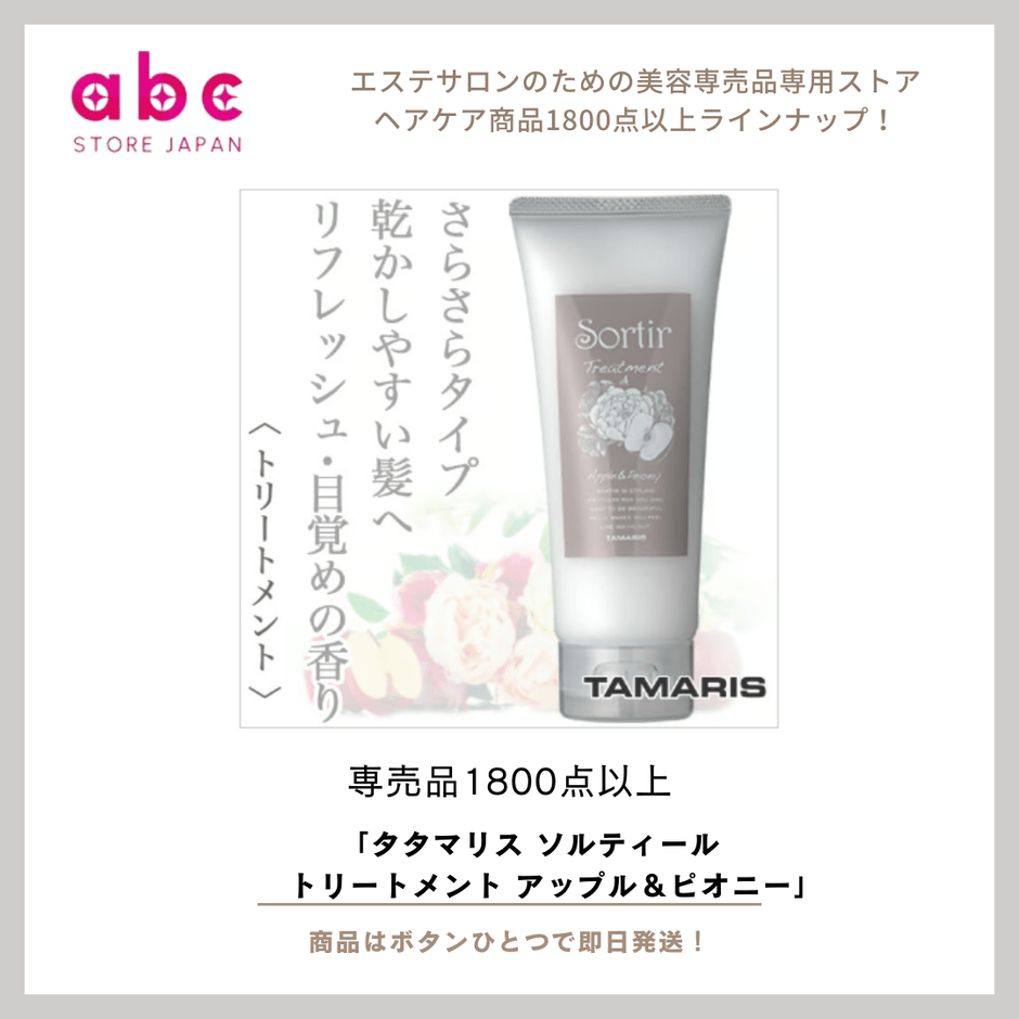 「タマリス ソルティール トリートメント アップル&ピオニー」は、アップルの爽やかさとピオニー(芍薬)の優雅な甘さが絶妙に調和した、女性にも男性にも人気のフレグランストリートメントです。