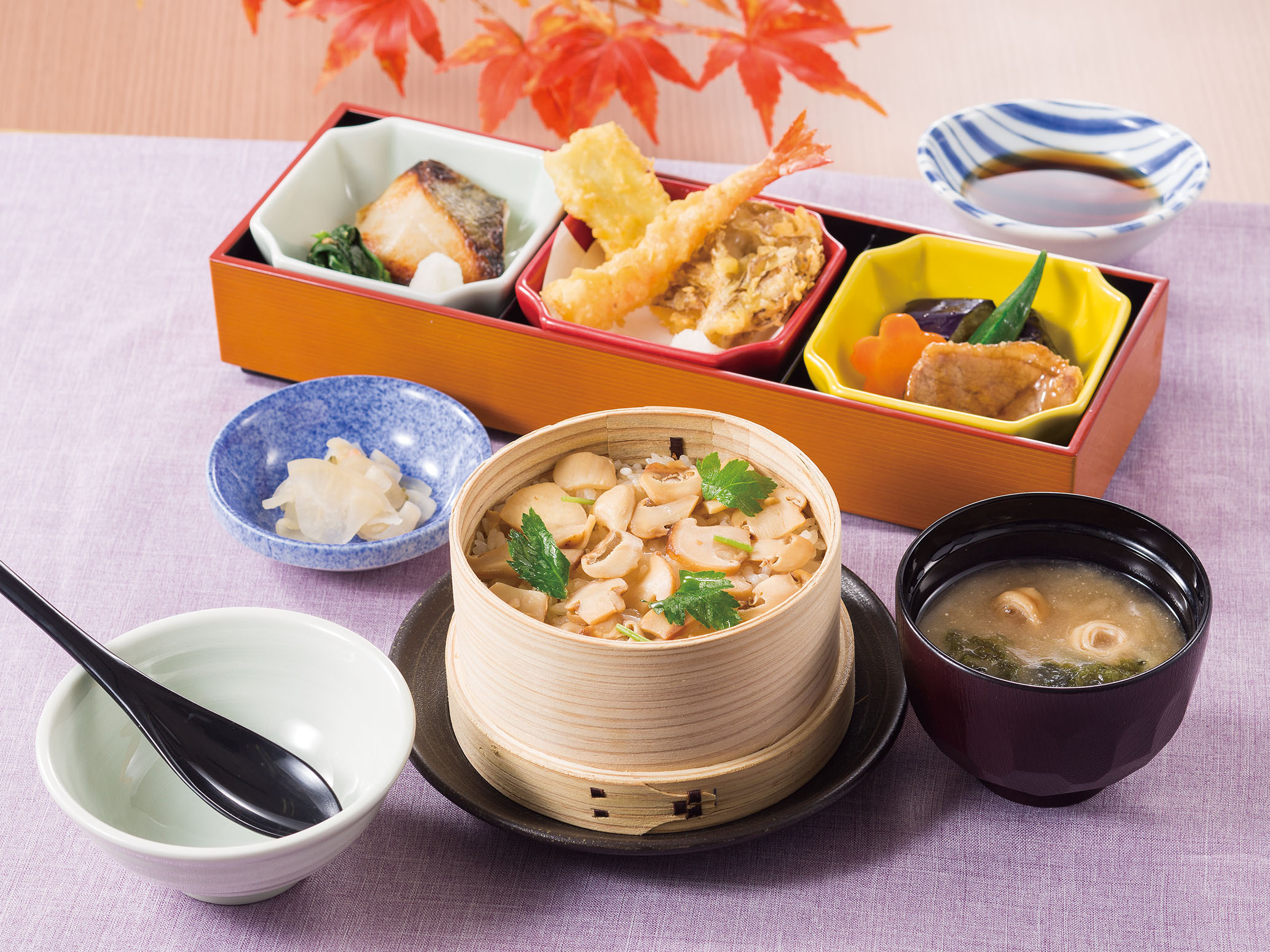 香り豊かな松茸御飯の他、季節の特選素材の丹波しめじ、舞茸の天ぷらも付いた欲張りな御膳です。