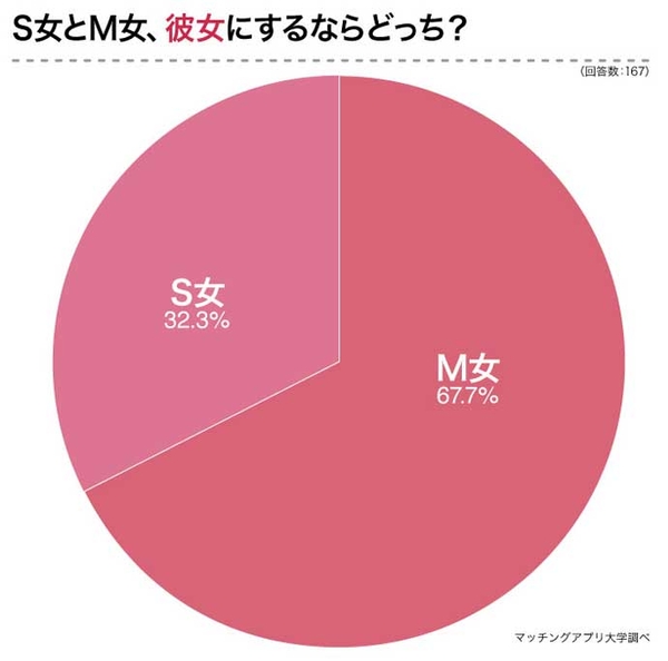 また、男性167人にも同様の調査を実施。Sキャラ、Mキャラの人は各々どのようなタイプを選ぶ傾向にあるのかについても探ってみました。