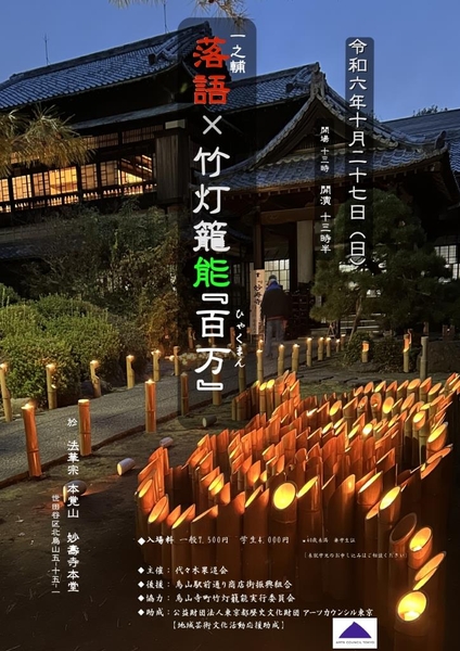 春風亭一之輔の落語で笑い、竹灯籠の灯りで幽玄な能楽『百万』に浸る 一年に一度の祭典 都内の寺院・妙寿寺で開催決定