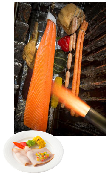 (1)・巨大バーナーで炙る「スモークライブ」秋刀魚&ポーク