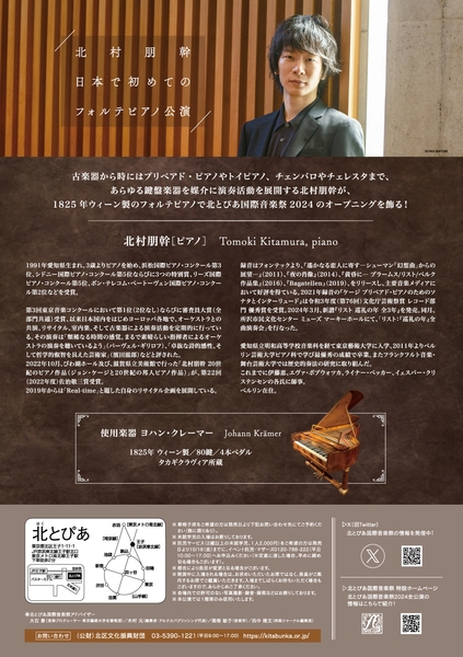 公益財団法人北区文化振興財団主催、北とぴあ国際音楽祭2024『北村朋幹フォルテピアノ・リサイタル ―シューマン《幻想曲》をめぐって』が2024年10月26日 (土)に北とぴあ さくらホール(東京都北区王子1-11-1)にて開催されます。
