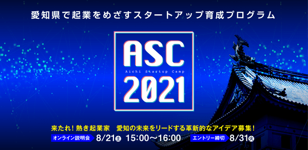 愛知県は、Aichi-Startup戦略の一環として、革新的なアイデアで起業を目指す人材を発掘・養成するワークショップ「Aichi Startup Camp 2021(あいちスタートアップキャンプ2021)」を実施します。