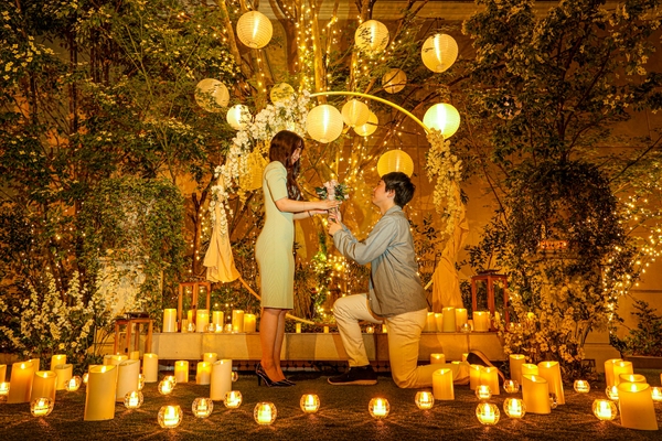 数々の結婚式を手掛けるスタッフが、一生記憶に残るプロポーズをプロデュース。クリスマス期間限定で、チャペルの中をキャンドルで装飾し、ロマンチックな雰囲気を演出いたします。また、フラワーシャワーやバブルマシーンで成功をお祝いし、幸せなひとときを徹底サポート。また、オプションで薔薇の花束のご用意や、プロのカメラマンが記録映像を撮影することも可能。