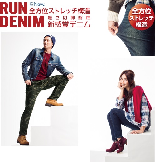 RUN DENIM  タテにもヨコにも良く伸びる全方位ストレッチ構造で、動きやすく“驚きの伸縮性新感覚デニム”です。
