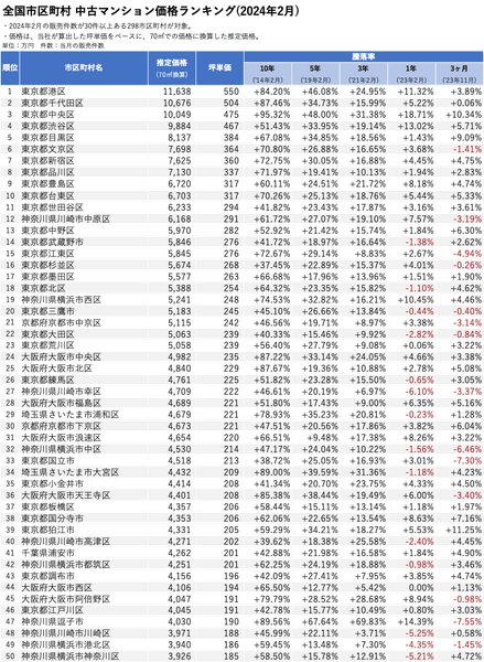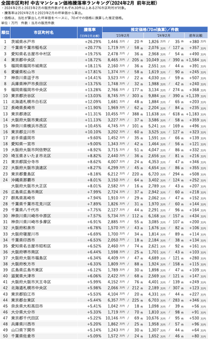 ■全国市区町村 中古マンション価格騰落率ランキング(2024年2月_前年比較)