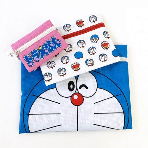 デザインがどれも可愛いどらえもんの3連ポーチです。ドラえもんのお顔がとても可愛くてキュートなデザイン☆裏面のデザインもかわいいので用途に合わせて楽しく使えます♪Lサイズ270×210 Mサイズ190×140 Sサイズ110×80
