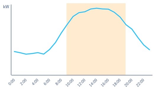 オフィスにおいては、一般的に9時から19時頃に消費電力が高い傾向があります。