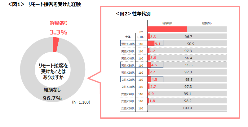 新しい試みということもあるからか、リモート接客の経験者は全体の3.3%と低い結果になった。<図1>