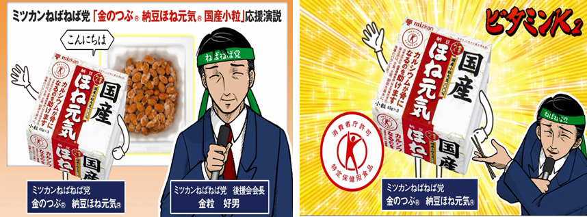 「ミツカンねばねば党」の後援会会長が、ほね元気を力強く推す動画です。選挙の応援演説に見立てた企画モノ。