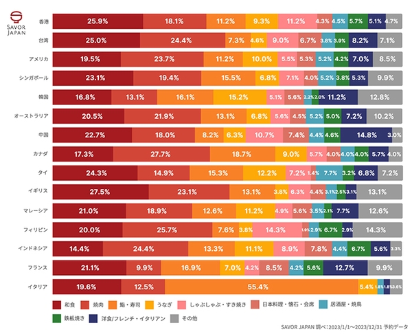 ・「日本らしい食」の中でも予約ジャンル傾向は各国の食の好みや文化の違いを反映、豪州、北米、欧州から人気の高い「寿司」は中国、台湾では低め