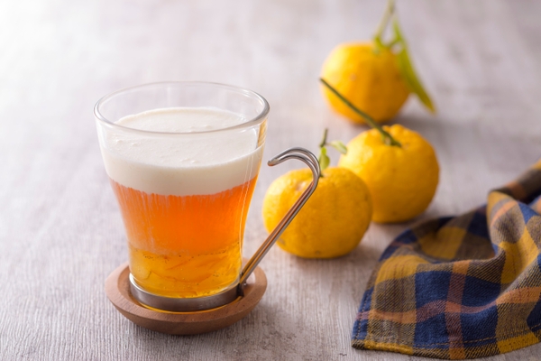 爽やかな香りの柚子ジャムに紅茶を注ぎ、泡立てたクリームチーズをのせたホットティー。