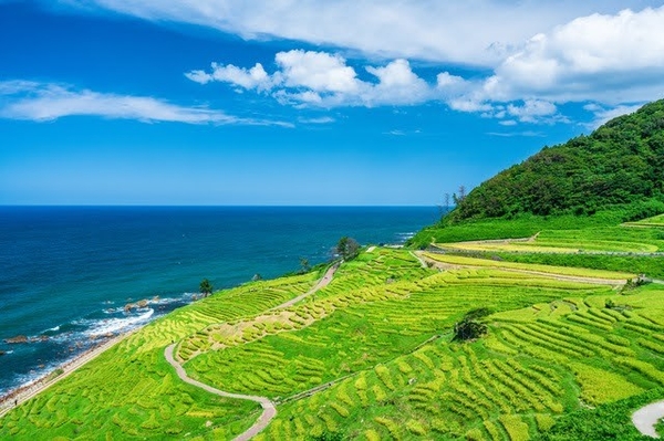 輪島市の白米千枚田は、能登の厳しい自然と共に受け継がれてきた農耕文化の象徴。海へと連なる棚田の景観は世界農業遺産の中核を成し、イルミネーション「あぜのきらめき」*による革新的な保全も高く評価されています。