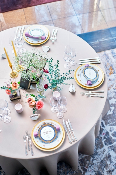 優雅で華やかさのある色合いがおふたりを引き立てる、自然な彩りと香りに包まれたコーディネート。