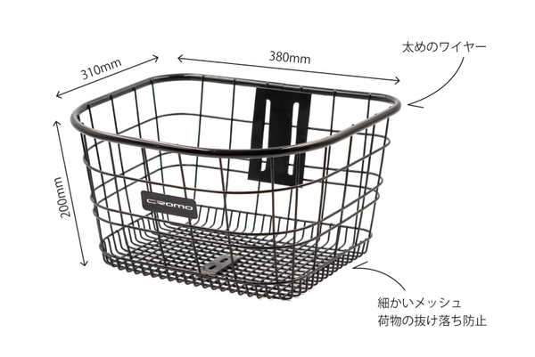 太めのワイヤーで歪みにくく、底部はワイヤーメッシュで荷物の落下のリスクが少ないバスケットは、