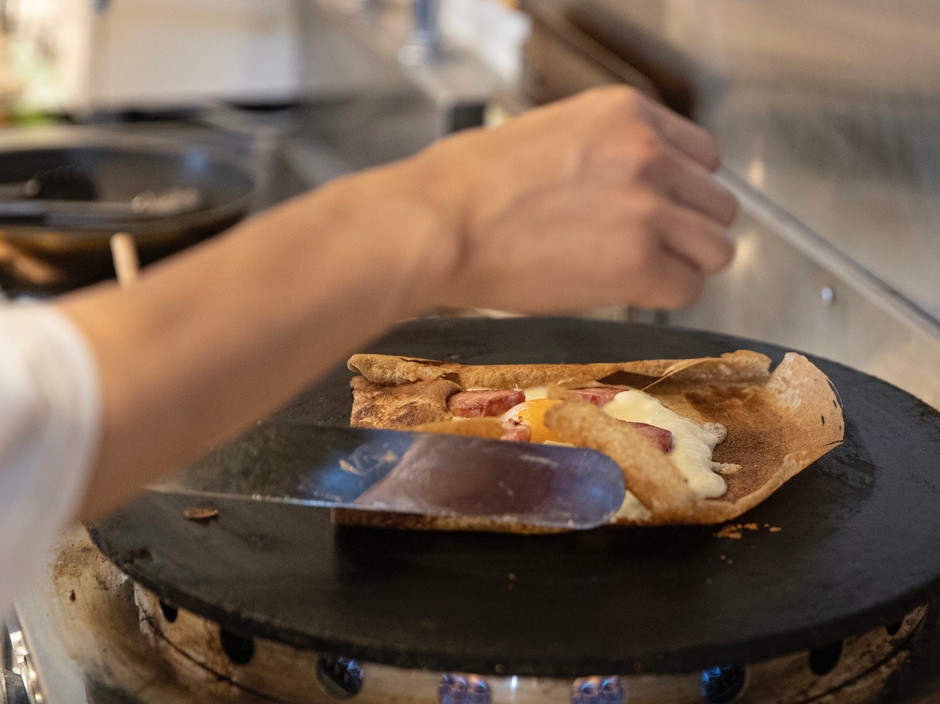 ガレットキッチンのそば粉は、シェフである神田和樹さん自身が全国各地のものの味や香りを比較した上で厳選した福井県のものを採用しており、さらにそれらを独自で配合して使用しているのです。それにより独特のパリッと感や風味を醸し出し、他では味わえない逸品となっているのです。
