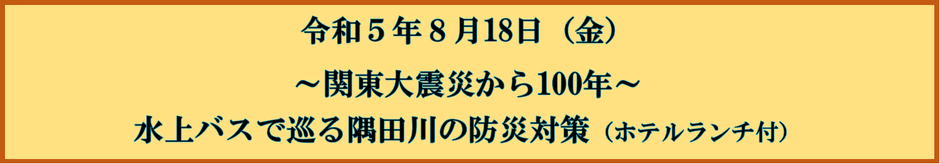 〇1923年9月1日に関東大震災が発生。それから100年が経ち、現在では首都直下地震や南海トラフ地震、記録的豪雨による災害に備えるため、様々な防災対策が進められています。災害に強い街づくりに邁進する東京都の取組を、座学と現場見学の両面から学びます。