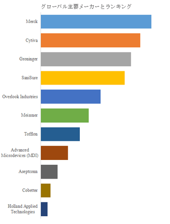 市場構造を見ると、Merckがグローバルリーダーとして最も高いシェアを占め、長年にわたり製薬業界向け無菌プロセス技術の標準を築いている。同社は高精度射出成形技術と滅菌管理体制を強みに、主要製薬企業との長期的パートナーシップを維持している。次いでCytiva、Groninger、SaniSureなど欧米企業が強固なポジションを確立し、プロセス統合型ソリューションの提供を通じて顧客囲い込みを進めている。一方、TofflonやCobetterなどアジア勢の台頭も顕著であり、コスト競争力と迅速なカスタマイズ対応を武器に、アジア市場を中心にシェア拡大を図っている。これらの企業は、単なる部品供給にとどまらず、充填装置・チューブ・バッグなどの周辺機器と連携した「統合型ディスポーザブルシステム」としての提案力を強化しており、今後の競争軸は「単品性能」から「工程全体の最適化」へと移行しつつある。