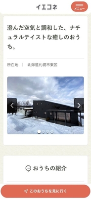 イエコネは、注文住宅を建てたユーザー(以下、オーナー)がサイト上に自身の家の専用ページを公開します。家の写真撮影やタイトル、紹介文など全てオーナー自身が作成しています。見学スケジュールもオーナーの都合の良い時間を設定することができ、見学希望ユーザー(以下、見学者)は、空いている日時に見学予約を申し込みます。見学終了後は、見学者をオーナー邸施工の住宅会社へ紹介する仕組みです。「イエコネで見学した、〇〇さんのお宅のようなキッチンにしたい」など見学者と住宅会社間のイメージの共有が容易になり、理想の家に近づけることができます。