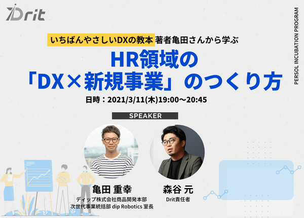 ―Drit INNOVATOR’S ONLINE TALK― 「いちばんやさしいDXの教本」著者 亀田重幸氏登壇! 無料ウェビナー「HR領域のDX×新規事業のつくり方」