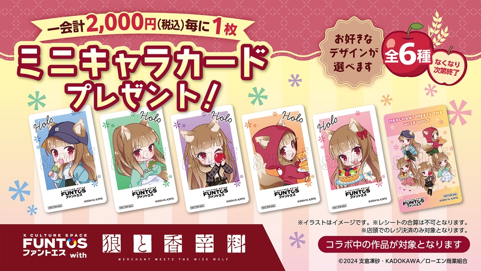 株式会社ソユーは、コラボレーションスペース事業「ファントエス」最新弾として、『ファントエス with 狼と香辛料 MERCHANT MEETS THE WISE WOLF』を全国のファントエスおよびオンラインショップにて2024年4月23日(火)~2024年5月15日(水)の期間限定で開催いたします。