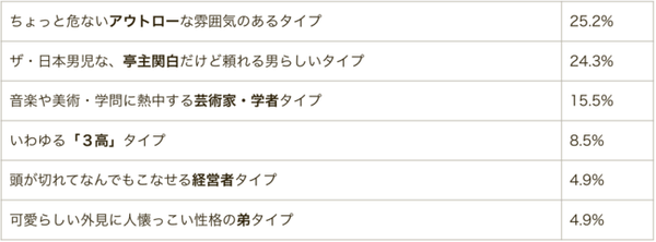 それぞれのタイプはまったく違いますが、共通しているのは、これまでのアンケートから女性が求めていると思われる「信頼でき、趣味などを通して一緒に楽しめる」という男性像から遠いということでしょう。